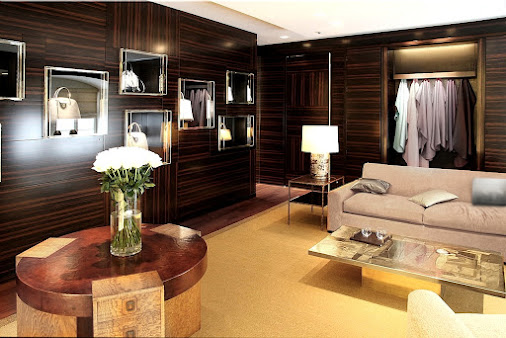 Decorated with cream and black marble, and with a pale marble floor and concealed lighting - the room was dominated by an L shaped sofa, a flat screen TV, and an elaborate audio-system, recessed into the black wall.